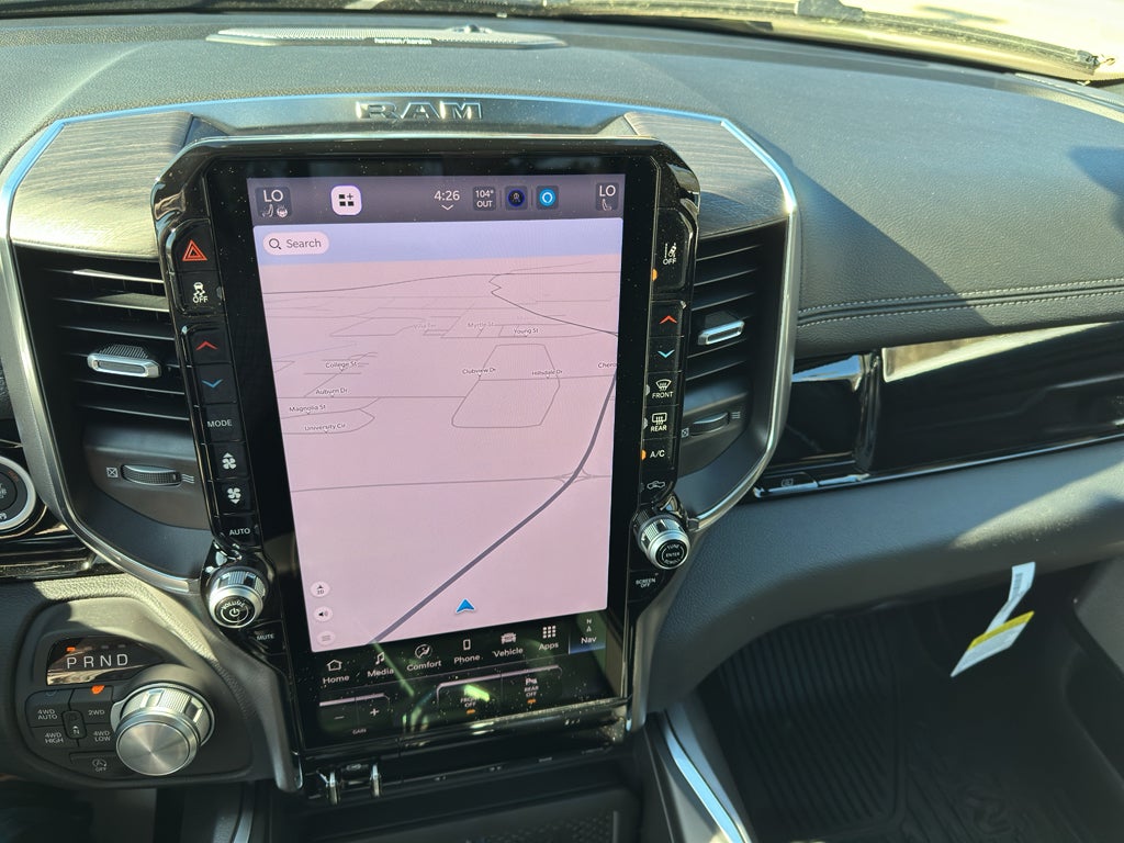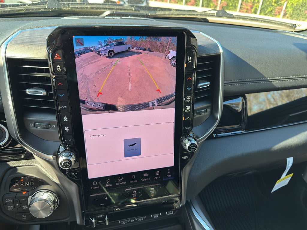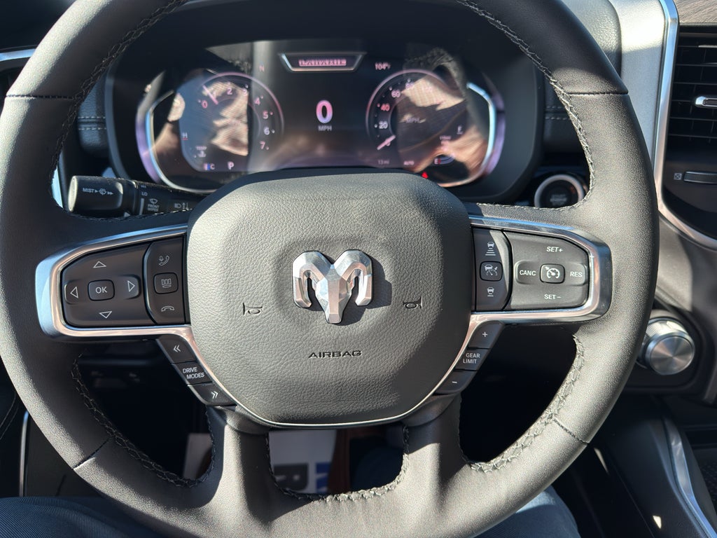 Inside, the Laramie elevates your drive with premium technology and comfort. The massive 14.4 inch primary display touchscreen with integrated navigation system with voice activation keeps you connected and on course. Enjoy seamless smartphone integration with Apple CarPlay/Android Auto smart device wireless mirroring, while the 4G LTE Wi-Fi Hot Spot mobile hotspot internet access keeps passengers entertained. The Harman/Kardon premium sound system delivers concert-quality audio. Comfort is paramount with simulated suede and leather front seat upholstery, heated driver and front passenger seats, heated rear seats, ventilated driver and front passenger seats, and a heated steering wheel. The first and second-row sliding and tilting glass sunroof with express open/close activation sunshade adds an open-air experience. Convenience features include keyfob remote start, power open and close tailgate, and adaptive cruise control with stop and go.