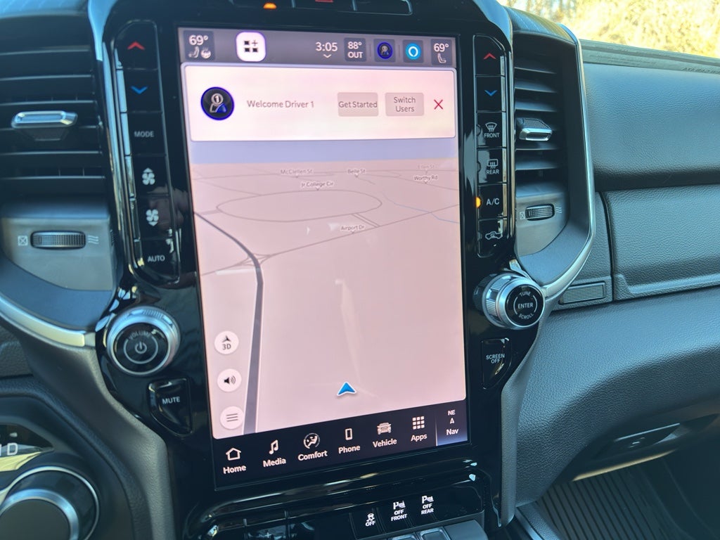 This 1/2 ton pickup has auto-adjust speed for safe following. Never get into a cold vehicle again with the remote start feature on this Ram 1500. This 1/2 ton pickup offers Android Auto for seamless smartphone integration. It keeps you comfortable with Auto Climate. It features a hands-free Bluetooth® phone system. See what's behind you with the back up camera on the Ram 1500. Keep your hands warm all winter with a heated steering wheel in the Ram 1500 . This vehicle's Forward Collision Warning feature alerts drivers to potential front-end collisions. The state of the art park assist system will guide you easily into any spot. It offers Apple CarPlay for seamless connectivity. The vehicle is equipped with the latest generation of XM/Sirius Radio. You'll never again be lost in a crowded city or a country region with the navigation system on this unit. The Ram 1500 has adjustable pedals that are luxurious and safety conscious.