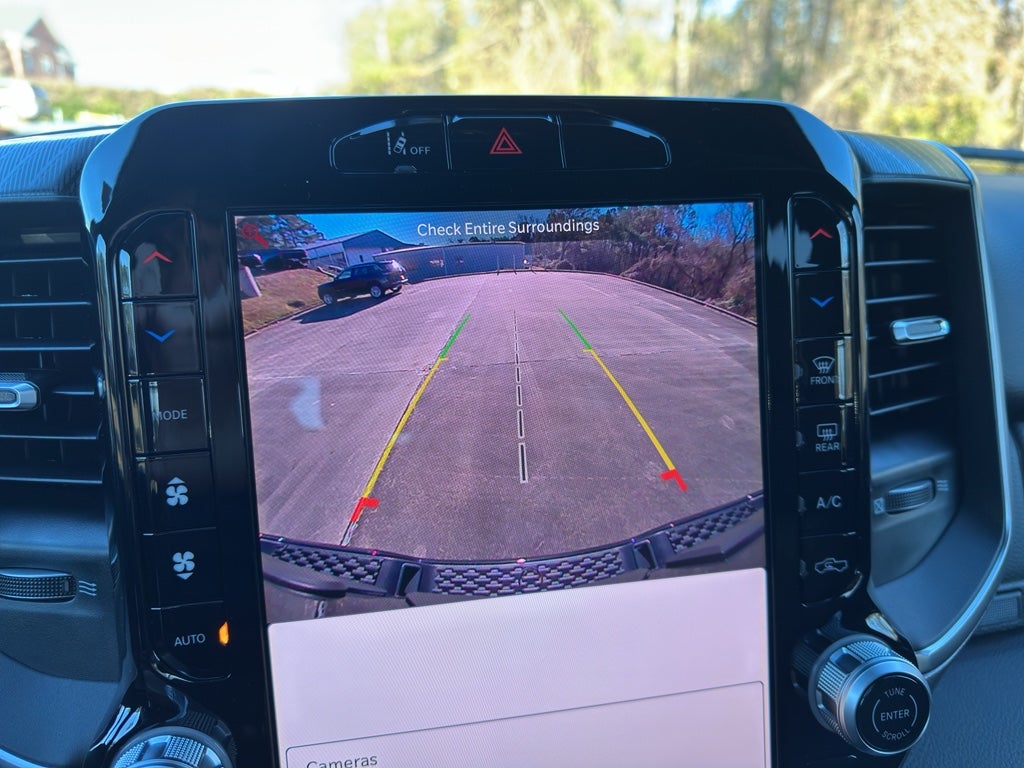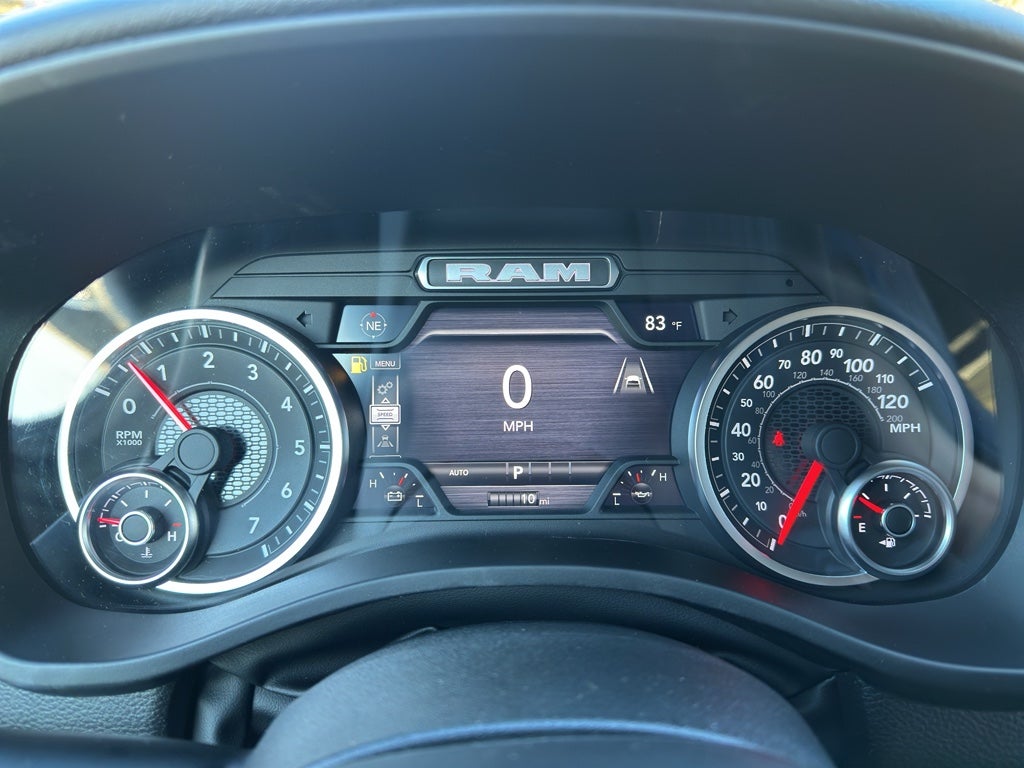 Quick Order Package 27Z Big Horn. Big Horn Level 2 Equipment Group: Google Android Auto; SiriusXM Radio Service; USB Host Flip; Power Adjustable Pedals; Leather Wrapped Steering Wheel; Integrated Voice Command with Bluetooth®; 12" Touchscreen Display; Glove Box Lamp; Auto Power-Folding Mirrors; 115V Auxiliary Rear Power Outlet; Media Hub with 2 Charge Only USBs; Heated Front Seats; Security Alarm; Black Premium Power Mirrors; Apple CarPlay; Premium Overhead Console; 9 Amplified Speakers with Subwoofer; Disassociated Touchscreen Display; Body Color Fender Flares; Remote Tailgate Release; 115V Auxiliary Power Outlet; LED Dome Lamp with On/off Switch; Universal Garage Door Opener; 2nd Row in Floor Storage Bins; Sun Visors with Illuminated Vanity Mirrors; LED Footwell Lighting; Rear Window Defroster; Integrated Center Stack Radio; Rear View Auto Dim Mirror; Rear Power Sliding Window; Connectivity - US/Canada; GPS Navigation; 4G LTE Wi-Fi Hot Spot; GPS Antenna Input; Overhead LED Lamps; Exterior Mirrors with Heating Element; Auto Dim Exterior Driver Mirror; SiriusXM with 360L; Global Telematics Box Module; Connected Travel and Traffic Services; Heated Steering Wheel; Configurable Drive Mode; 400W Inverter; HD Radio; Deluxe Cloth Bucket Seats; Uconnect 5 Navigation with 12.0" Display Radio; Exterior Mirrors with Supplemental Signals; Steering Wheel Mounted Audio Controls; Exterior Mirrors Courtesy Lamps; Air Conditioning ATC with Dual Zone Control; Cluster 7.0" TFT Color Display; Convex Wide-Angle Exterior Mirror Insert. Night Edition: 275/55R20 OWL All Season Tires; Accent Color Premium Power Mirrors; Exterior Mirrors with Supplemental Signals; Black Headlamp Bezels; Exterior Mirrors Courtesy Lamps; Grille Black Surround Black Mesh; Auto Power-Folding Mirrors; Exterior Mirrors with Heating Element; 20" X 9.0" Aluminum Painted Clad Wheels; Auto Dim Exterior Driver Mirror; Black Exterior Truck Badging; Anti-Spin Differential Rear Axle; Accent Color Door Handles; Accent Color Tailgate Handle; Black Interior Accents; Dual Exhaust with Black Tips; Body Color Front Bumper; Convex Wide-Angle Exterior Mirror Insert; Body Color Rear Bumper with Step Pads; Black Tail Lamp Bezels; RAM Grille Badge - Black; Black Painted Exterior Mirrors Caps. Protection Group: Steering Gear Skid Plate; Tow Hooks; Transfer Case Skid Plate; Fuel Tank Skid Plate. Quick Order Package 23Z Big Horn. 9 Amplified Speakers with Subwoofer. Anti-Spin Differential Rear Axle. Trailer Brake Control. Diamond Black Crystal PC. MOPAR Front and Rear Rubber Floor Mats. 3.92 Rear Axle Ratio. Rear Wheelhouse Liners. **Equipment listed is based on original vehicle build and subject to change. Please confirm the accuracy of the included equipment by calling the dealer prior to purchase.**