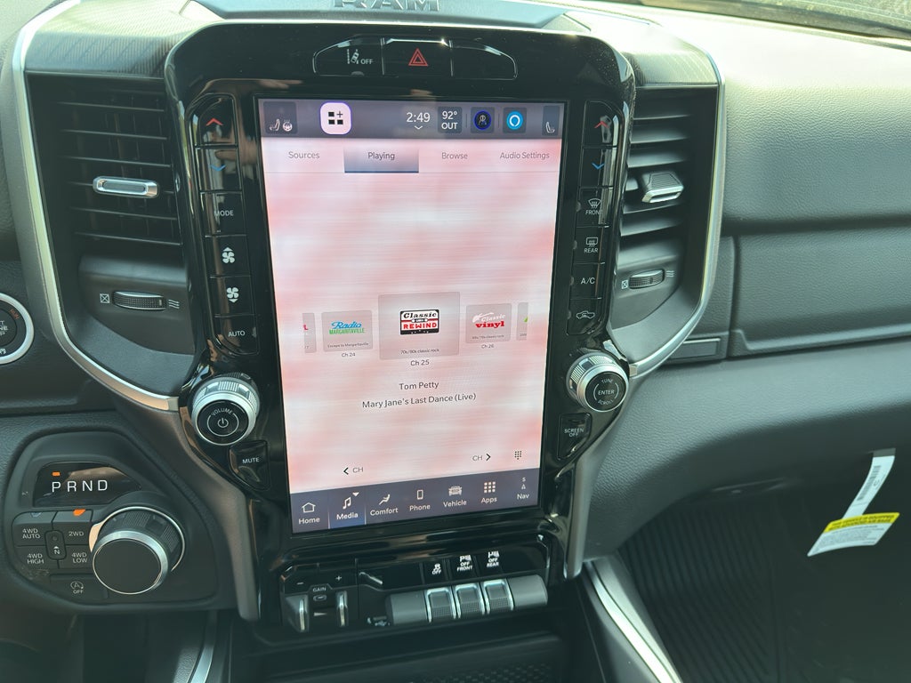 Quick Order Package 27Z Big Horn. Big Horn Level 2 Equipment Group: Google Android Auto; SiriusXM Radio Service; USB Host Flip; Power Adjustable Pedals; Leather Wrapped Steering Wheel; Integrated Voice Command with Bluetooth®; 12" Touchscreen Display; Glove Box Lamp; Auto Power-Folding Mirrors; 115V Auxiliary Rear Power Outlet; Media Hub with 2 Charge Only USBs; Heated Front Seats; Security Alarm; Black Premium Power Mirrors; Apple CarPlay; Premium Overhead Console; 9 Amplified Speakers with Subwoofer; Disassociated Touchscreen Display; Body Color Fender Flares; Remote Tailgate Release; 115V Auxiliary Power Outlet; LED Dome Lamp with On/off Switch; Universal Garage Door Opener; 2nd Row in Floor Storage Bins; Sun Visors with Illuminated Vanity Mirrors; LED Footwell Lighting; Rear Window Defroster; Integrated Center Stack Radio; Rear View Auto Dim Mirror; Rear Power Sliding Window; Connectivity - US/Canada; GPS Navigation; 4G LTE Wi-Fi Hot Spot; GPS Antenna Input; Overhead LED Lamps; Exterior Mirrors with Heating Element; Auto Dim Exterior Driver Mirror; SiriusXM with 360L; Global Telematics Box Module; Connected Travel and Traffic Services; Heated Steering Wheel; Configurable Drive Mode; 400W Inverter; HD Radio; Deluxe Cloth Bucket Seats; Uconnect 5 Navigation with 12.0" Display Radio; Exterior Mirrors with Supplemental Signals; Steering Wheel Mounted Audio Controls; Exterior Mirrors Courtesy Lamps; Air Conditioning ATC with Dual Zone Control; Cluster 7.0" TFT Color Display; Convex Wide-Angle Exterior Mirror Insert. Night Edition: 275/55R20 OWL All Season Tires; Accent Color Premium Power Mirrors; Exterior Mirrors with Supplemental Signals; Black Headlamp Bezels; Exterior Mirrors Courtesy Lamps; Grille Black Surround Black Mesh; Auto Power-Folding Mirrors; Exterior Mirrors with Heating Element; 20" X 9.0" Aluminum Painted Clad Wheels; Auto Dim Exterior Driver Mirror; Black Exterior Truck Badging; Anti-Spin Differential Rear Axle; Accent Color Door Handles; Accent Color Tailgate Handle; Black Interior Accents; Dual Exhaust with Black Tips; Body Color Front Bumper; Convex Wide-Angle Exterior Mirror Insert; Body Color Rear Bumper with Step Pads; Black Tail Lamp Bezels; RAM Grille Badge - Black; Black Painted Exterior Mirrors Caps. Protection Group: Steering Gear Skid Plate; Tow Hooks; Transfer Case Skid Plate; Fuel Tank Skid Plate. Quick Order Package 23Z Big Horn. 9 Amplified Speakers with Subwoofer. Anti-Spin Differential Rear Axle. Trailer Brake Control. Granite Crystal Met CC. MOPAR Front and Rear Rubber Floor Mats. 3.92 Rear Axle Ratio. Rear Wheelhouse Liners. **Equipment listed is based on original vehicle build and subject to change. Please confirm the accuracy of the included equipment by calling the dealer prior to purchase.**