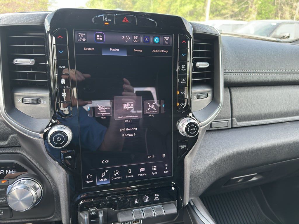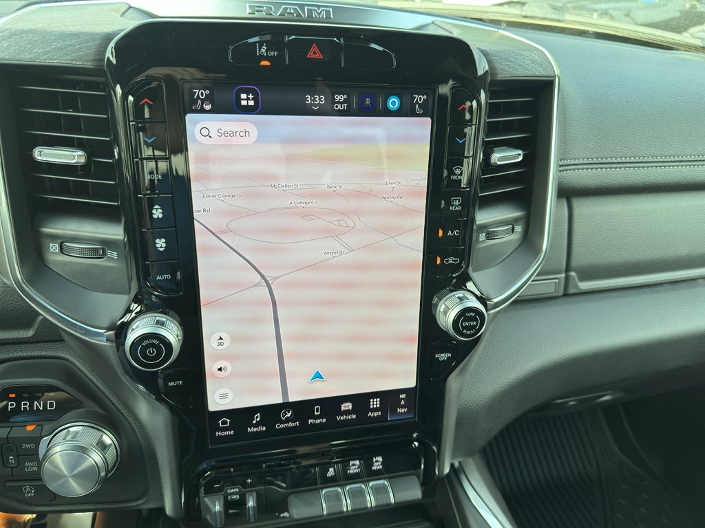Step inside the Laramie's premium cabin featuring simulated suede and leather front seat upholstery, heated and ventilated driver and front passenger seats, and a heated steering wheel for year-round comfort. The 12-inch touchscreen with integrated navigation system keeps you on course, while Apple CarPlay/Android Auto smart device wireless mirroring and Uconnect with Bluetooth® handsfree connectivity keep you seamlessly connected. Enjoy the open-air experience with the first and second-row sliding and tilting glass sunroof, and stay comfortable with heated rear seats for your passengers.