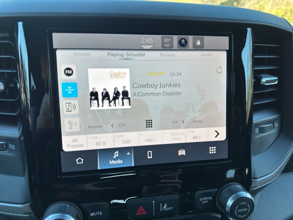 It's Forward Collision Warning feature alerts drivers to potential front-end collisions. Never get into a cold vehicle again with the remote start feature on this Ram 1500. This Ram 1500 features a hands-free Bluetooth® phone system. This unit offers Android Auto for seamless smartphone integration. An off-road package is installed on the Ram 1500 so you are ready for your four-wheeling best. Apple CarPlay: Seamless smartphone integration for it - stay connected and entertained on the go! This 1/2 ton pickup has automated speed control that adjusts to maintain a safe following distance, enhancing highway driving convenience. This model is equipped with the latest generation of XM/Sirius Radio. The state of the art park assist system will guide you easily into any spot. See what's behind you with the back up camera on this Ram 1500. It has satellite radio capabilities. This vehicle has an elegant black exterior finish. The Ram 1500 has four wheel drive capabilities.