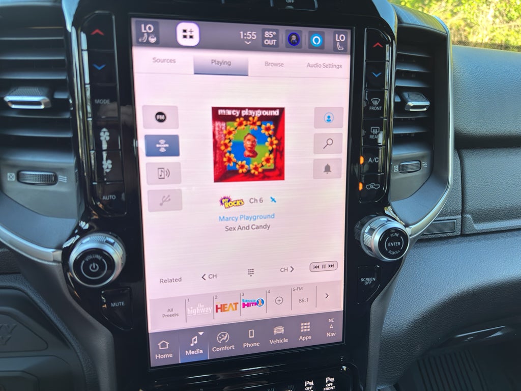 Quick Order Package 24Z Big Horn. Night Edition: Firestone Brand Tires; Gloss Black Nostrils/mic Black Grille; LT285/60R20E OWL On/off Road Tires; Black Exterior Truck Badging; 20" X 8.0" Black Painted Aluminum Wheels; Body Color Grille-Surround; Black Interior Accents; Black Wheel Center Hub; Painted Front Bumper; Painted Rear Bumper. Big Horn Level 1 Plus Equipment Group: Google Android Auto; SiriusXM Radio Service; For Details. Visit DriveUconnect.com; For More Info. Call 800-643-2112; Integrated Voice Command with Bluetooth®; Emergency Vehicle Alert System (EVAS); 12" Touchscreen Display; Glove Box Lamp; Auto Power-Folding Mirrors; Footwell Courtesy Lamp; Anti-Spin Differential Rear Axle; Mirror Running Lights; MOPAR Deployable Bed Step; Alexa Built-In; Apple CarPlay; Power-Adjustable Convex Aux Mirrors; Forward and Reverse Utility Lights; Locking Lower Glove Box; Remote Start System; 9 Alpine Speakers with Subwoofer; Disassociated Touchscreen Display; Dual Glove Boxes; 2nd Row in Floor Storage Bins; Rear View Auto Dim Mirror; Rear Dome with On/off Switch Lamp; LED Bed Lighting; Connectivity - US/Canada; GPS Navigation; 4G LTE Wi-Fi Hot Spot; GPS Antenna Input; Exterior Mirrors with Heating Element; SiriusXM with 360L; Global Telematics Box Module; Connected Travel and Traffic Services; Foam Bottle Insert (door Trim Panel); Black Exterior Mirrors; Big Horn Instrument Panel Badge; Off-Road Info Pages; Selectable Tire Fill Alert; Trailer Tow Pages; HD Radio; Uconnect 5 Navigation with 12.0" Display Radio; Power Heated Folding Telescopic Mirrors; Exterior Mirrors with Supplemental Signals; Steering Wheel Mounted Audio Controls; Exterior Mirrors Courtesy Lamps; Air Conditioning ATC with Dual Zone Control; MOPAR Spray in Bedliner; Power Adjust Mirrors; Luxury Steering Wheel; Power Telescoping Mirrors. Heated Seats and Wheel Group: Heated Front Seats; Heated Steering Wheel. 5th Wheel/gooseneck Towing Prep Group. Anti-Spin Differential Rear Axle. Premium Cloth Bucket Seats. Remote Start System. MOPAR Front and Rear Rubber Floor Mats. Power 2-Way Driver Lumbar Adjust. Clearance Lamps. Transfer Case Skid Plate Shield. **Equipment listed is based on original vehicle build and subject to change. Please confirm the accuracy of the included equipment by calling the dealer prior to purchase.**