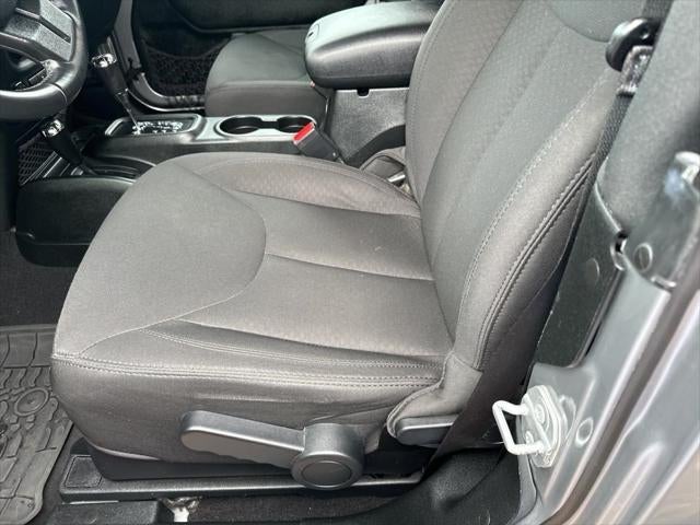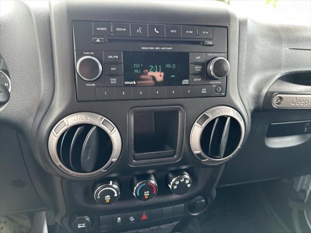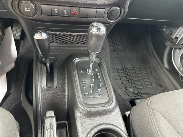 The satellite radio system in this unit gives you access to hundreds of nation-wide radio stations with a clear digital signal. An off-road package is equipped on this unit. This mid-size suv has a clean CARFAX vehicle history report. Bluetooth® technology is built into it, keeping your hands on the steering wheel and your focus on the road. When you encounter slick or muddy roads, you can engage the four wheel drive on the Jeep Wrangler and drive with confidence. This Jeep Wrangler has a V6, 3.6L high output engine. Maintaining a stable interior temperature in this Jeep Wrangler is easy with the climate control system. This vehicle gleams with an elegant silver clear coated finish. The Jeep Wrangler has an automatic transmission. The vehicle is equipped with a gasoline engine. Easily set your speed in this model with a state of the art cruise control system. Increase or decrease velocity with the touch of a button.